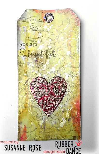 I'm sharing my entry for the Rubber Dance Colour Challenge. I've created a mixed media Tag. You will find all the details on the Rubber Dance blog.